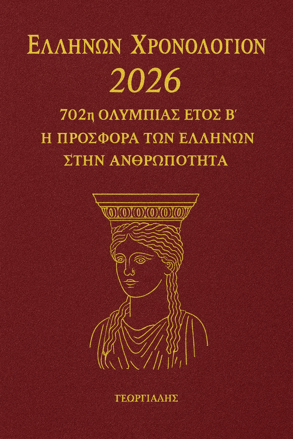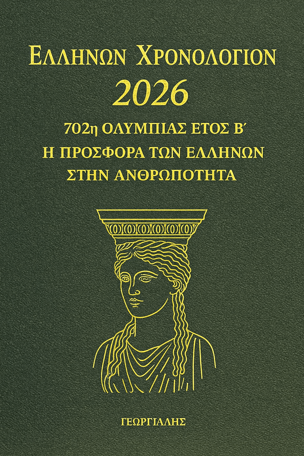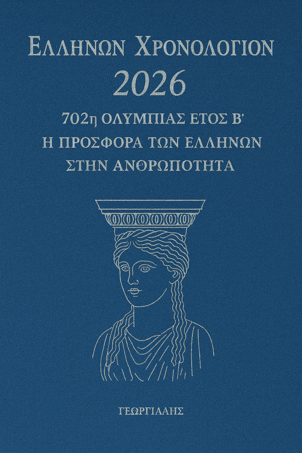 Τιμή: 20 € Το επετειακό Ελλήνων Χρονολόγιον 2026 των εκδόσεων Γεωργιάδη κυκλοφορεί για 30ή συνεχή χρονιά, συνεχίζοντας μία παράδοση που ξεκίνησε το 1997 και αγαπήθηκε από χιλιάδες αναγνώστες. Κάθε σελίδα αποτελεί μια μικρή στάση μνήμης, έμπνευσης και ελληνικής σοφίας, φωτίζοντας καθημερινά την προσφορά των Ελλήνων στον παγκόσμιο πολιτισμό. Στις 366 σελίδες του θα βρείτε: — Ένα ρητό σε κάθε σελίδα από την αρχαία ελληνική γραμματεία — Ένα σύντομο κείμενο ή σχόλιο που ερμηνεύει, εμπνέει και συνδέει το παρελθόν με το σήμερα — Σπουδαίους στίχους από ποιητές και δημιουργούς που ύψωσαν το ελληνικό πνεύμα στην παγκόσμια λογοτεχνία — Επιλεγμένα γεγονότα, πρόσωπα και μνήμες που διατηρούν ζωντανή τη φλόγα του ελληνικού πολιτισμού — Προσεγμένη καλλιτεχνική επιμέλεια και τρία κομψά εξώφυλλα σε βαθύ κόκκινο, μπλε και πράσινο Όλα τα κείμενα είναι στα Ελληνικά και τα Αγγλικά. Το φετινό θέμα, «Η προσφορά των Ελλήνων στην Ανθρωπότητα», αναδεικνύει το αθάνατο αποτύπωμα της Ελλάδας: στη φιλοσοφία, στη δημοκρατία, στην επιστήμη, στις τέχνες, στη γλώσσα και στην ανθρώπινη σκέψη. Το χρονολόγιο προσφέρεται ως: Ημερήσιος οδηγός έμπνευσης Πολύτιμο δώρο για εκπαιδευτικούς, μαθητές και φίλους της ελληνικής γραμματείας Συλλεκτική έκδοση που τιμά την ελληνική πνευματική κληρονομιά Με σεβασμό στην παράδοση και με ματιά στο μέλλον, παραδίδουμε το Ελλήνων Χρονολόγιον 2026 ως μία καθημερινή υπενθύμιση ότι ο κόσμος χωρίς την Ελλάδα θα ήταν πολύ φτωχότερος σε φως, σκέψη και ελευθερία.