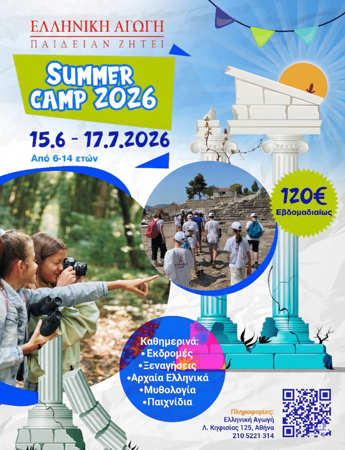 – Με καθημερινές εκδρομές σε διαφορετικούς προορισμούς. Τα παιδιά μαθαίνουν βιωματικά την Ιστορία και τον σπουδαίο ελληνικό Πολιτισμό.